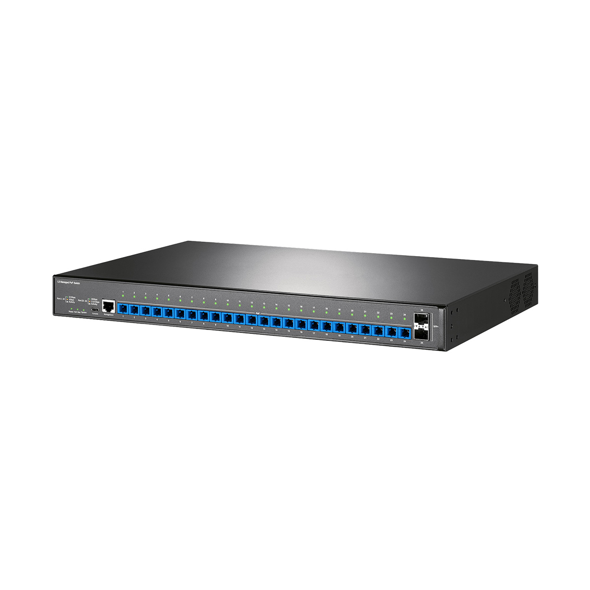 All 24 PoF ports feature built-in 2.5G SFP optics, eliminating external transceivers, compatibility headaches, and insertion loss. SC-type connectors ensure plug-and-play deployment. Benefit: Reduce installation time by 40%, prevent module mismatch failures, and lower TCO vs. “fiber + PoE injector” workarounds.
